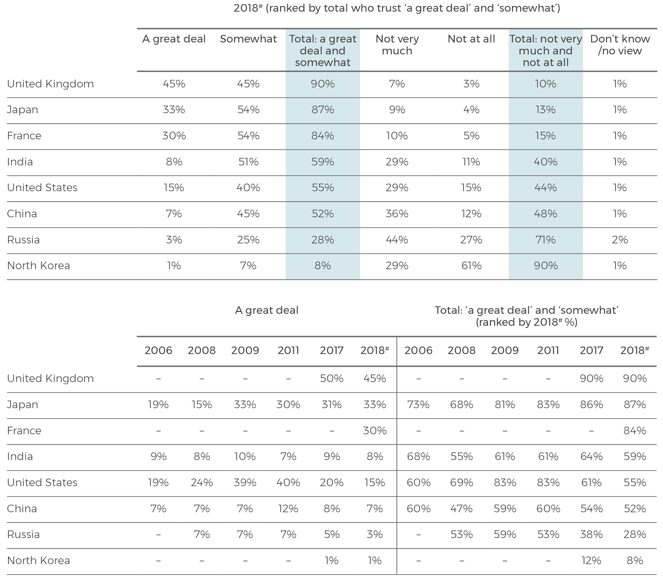 Table 1: How much do you trust the following countries to act responsibly in the world?