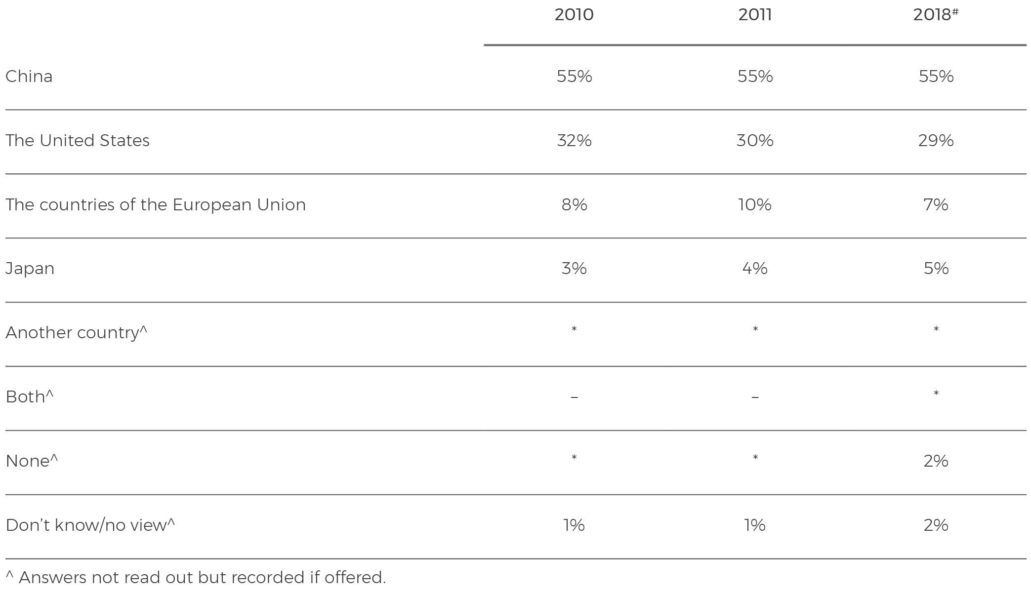 Table 14: Now about the world’s leading economic power. Today, which one of the following do you think is the world’s leading economic power?