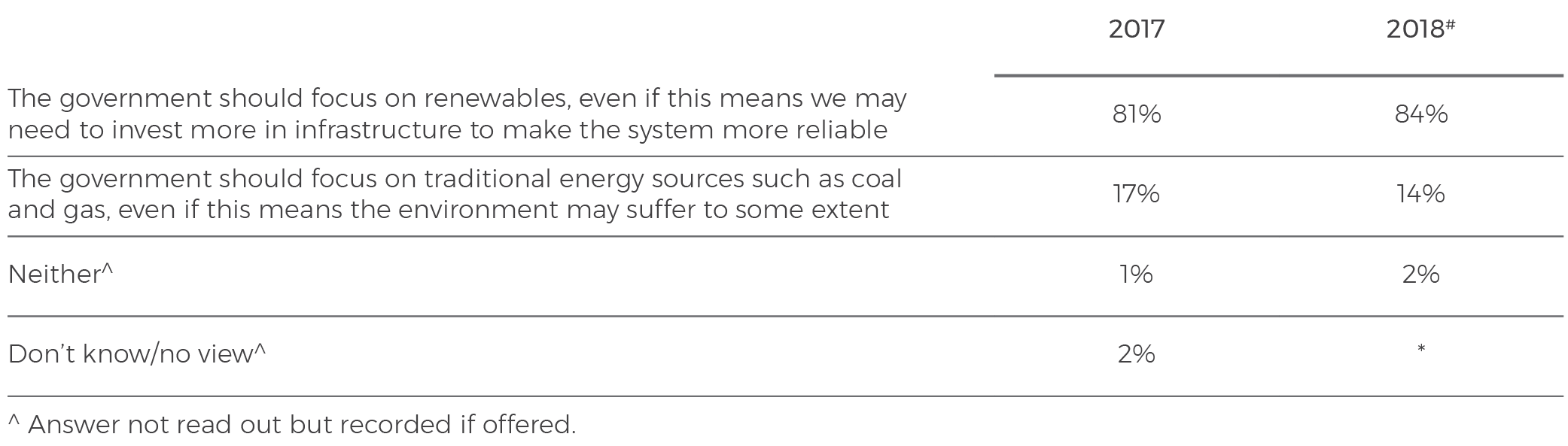 Table 17: I am going to read some statements about renewable energy and energy supply. Please say which one of these statements comes closest to your own point of view.