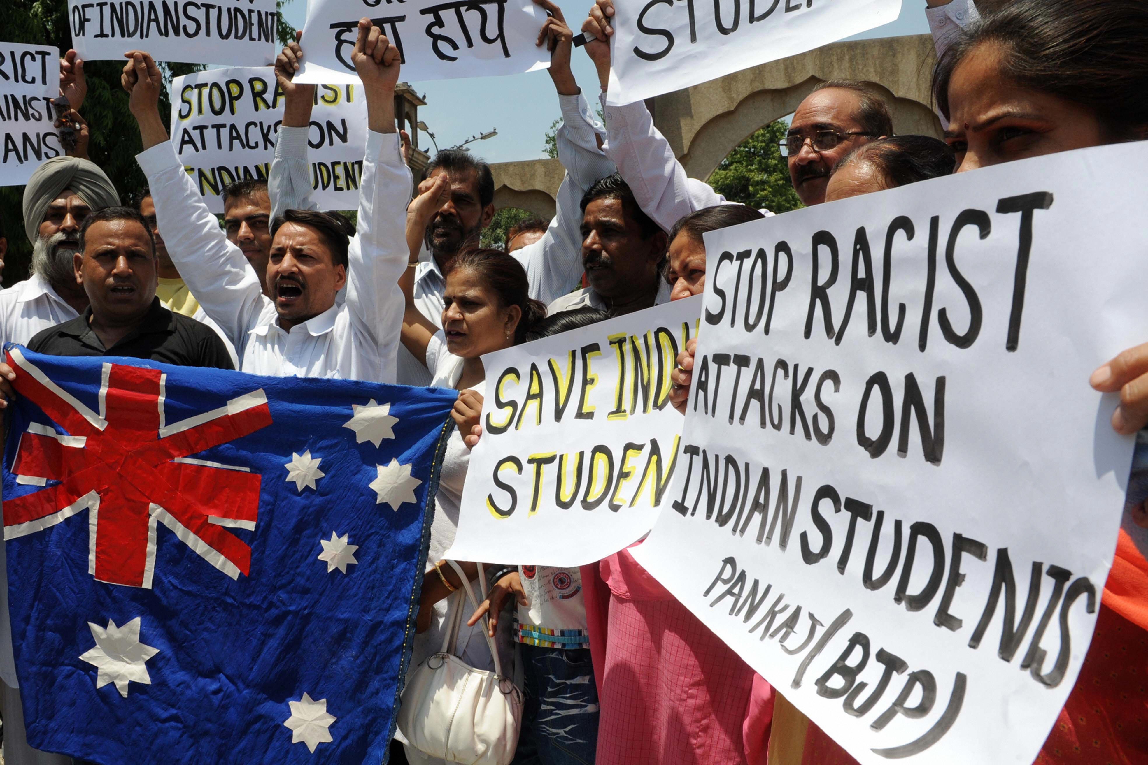 against the treatment of Indian students in Australia. Image: Narinder Nanu/AFP via Getty Images.