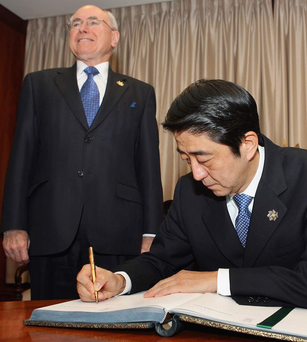 An examination of Abe’s policy goals demonstrates a commitment to realigning Japan’s foreign policy and, in particular, working more closely with a few select countries including Australia. Prior to becoming Prime Minister in 2006, for example, Abe published Towards a Beautiful Country (Utsukushii Kuni e), which advocated strengthening security cooperation with the United States, Australia and India. For Abe the explicit focus on Australia as a high priority country (the first Japanese Prime Minister to do so) had a personal connection. As Prime Minister, his revered paternal grandfather, Nobusuke Kishi signed off on the 1957 Agreement on Commerce that became the cornerstone for bilateral post-war reconciliation and the core foundation of the post-war Australia-Japan relationship.