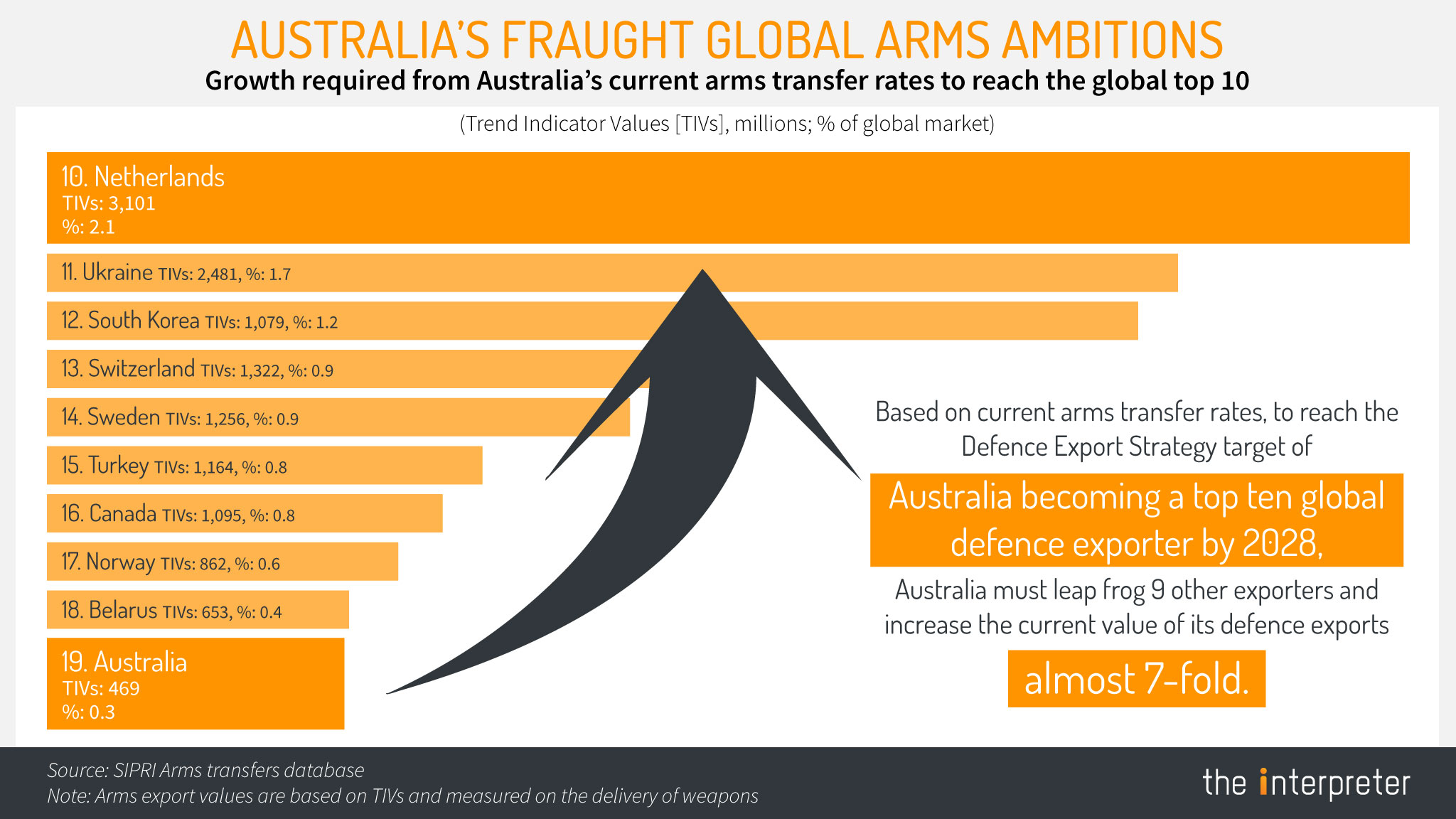 Australia’s new defence export strategy to transform the country into a top-10 global arms exporter raises many questions. This indicates that the government does not fully understand – or, at least, is yet to fully explain – the mechanisms behind the international arms industry and export market.