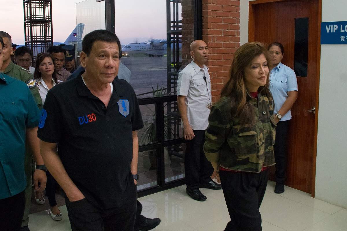 President Rodrigo Duterte with then-Governor of Ilocos Norte Imee Marcos at the Laoag International Airport after typhoon Lawin hit the province, 23 October 2016 (Ilocos Norte/Flickr)
