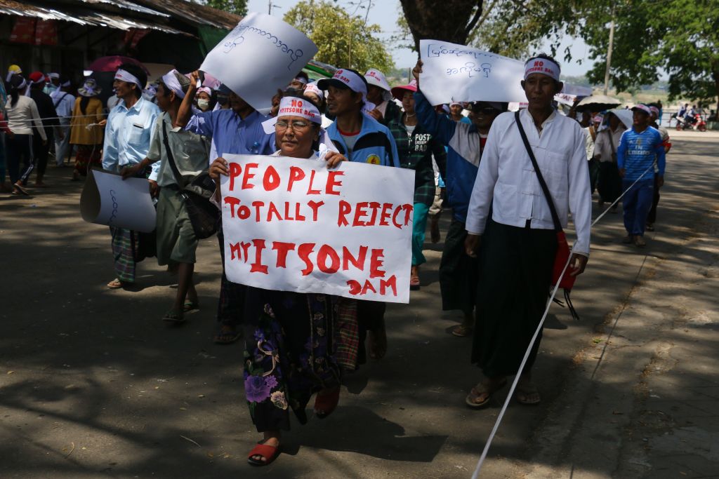 Protests in Kachin State, Myanmar, against the Irrawaddy Myitsone dam project in April (Photo: Zau Ring Hpra via Getty)
