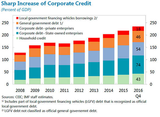 Thus the IMF remains pessimistic: “International experience suggests that China’s credit growth is on a dangerous trajectory, with increasing risks of a disruptive adjustment and/or a marked growth slowdown”.