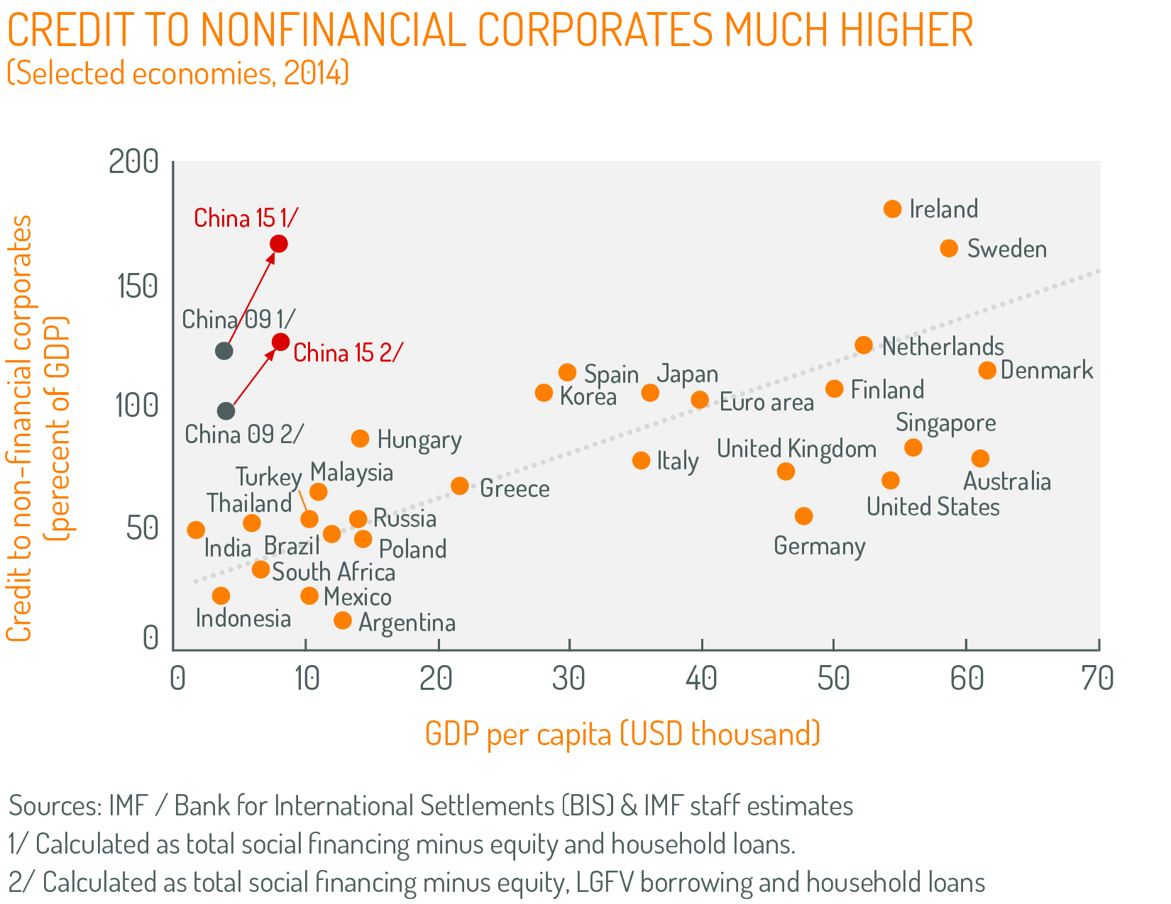 China's debt to GDP ratio isn't all that extraordinary by simple global comparison: it is about the same as many OECD countries (including Australia). The danger comes from the rate of growth and the fact that the debt level is much higher than other countries at China's stage of development. As countries grow, their financial sectors deepen and higher debt ratios are normal. But China, only half-way through the development process, has the debt levels of a mature economy, and the ratio is still growing. The level of corporate debt, especially, is way out of line.