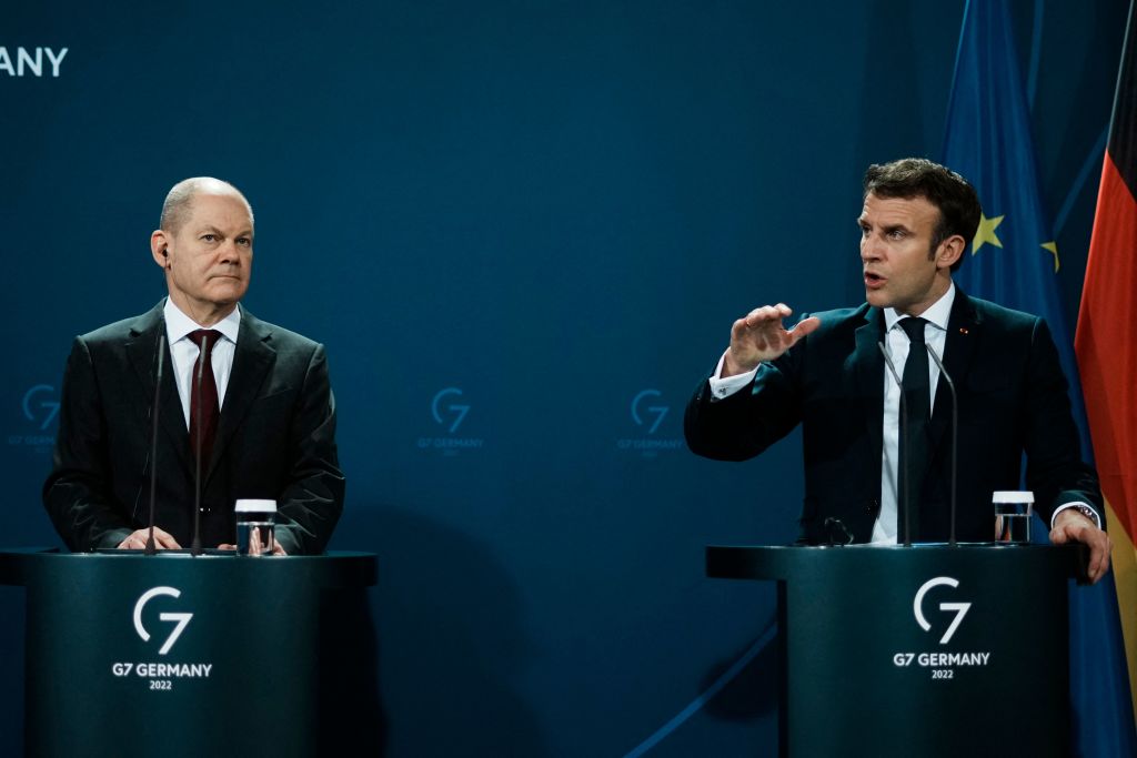 German Chancellor Olaf Scholz, left, alongside French President Emmanuel Macron this week in Berlin (Thibault Camus/AFP via Getty Images)