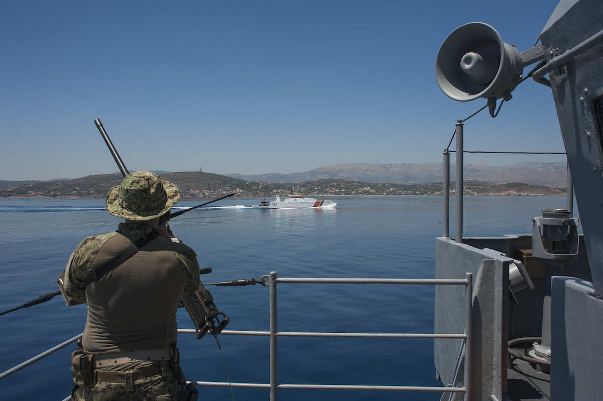 Around the Aegean islands dart militarised vessels bearing FRONTEX, Europe’s Border and Coast Guard Agency. Given the job of protecting the borders of the European Union, the organisation has received year-on-year boosts to its mandates and funding in response to the uptick in irregular migration at the height of Europe’s migration crisis in 2015, when numbers peaked at 1.8 million.