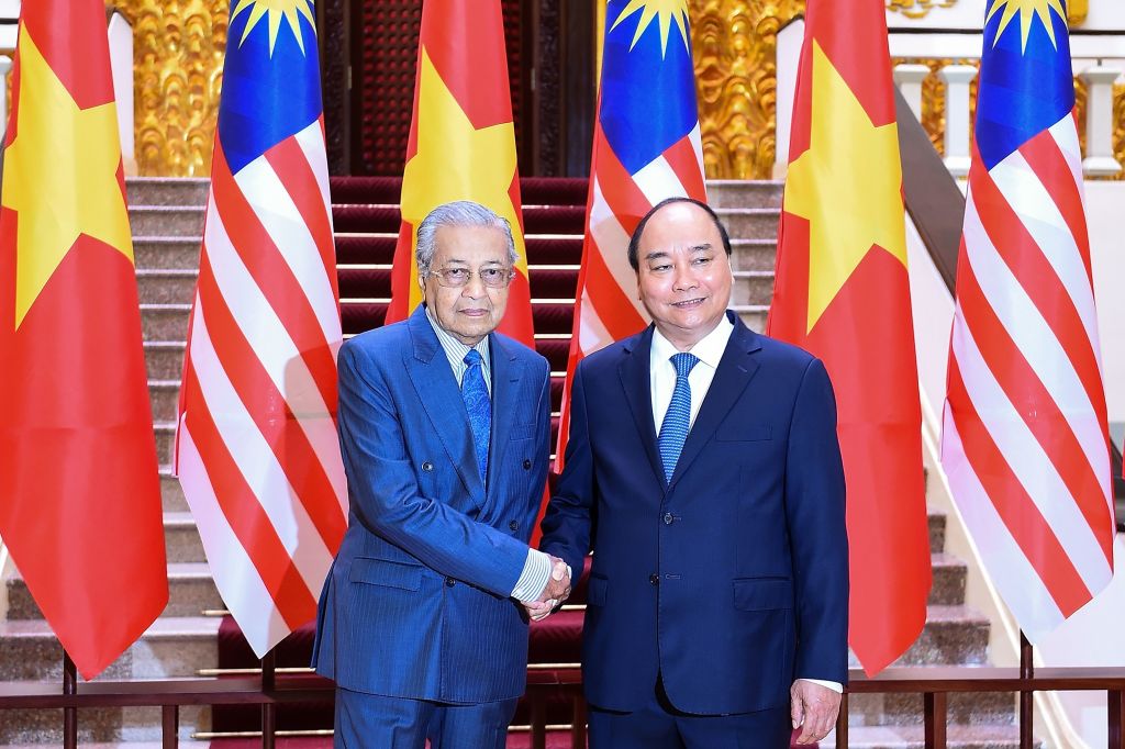 Malaysia’s Prime Minister Mahathir Mohamad with his Vietnamese counterpart Nguyen Xuan Phuc in Hanoi in August (Photo: Nhac Nguyen/AFP/Getty Images)
