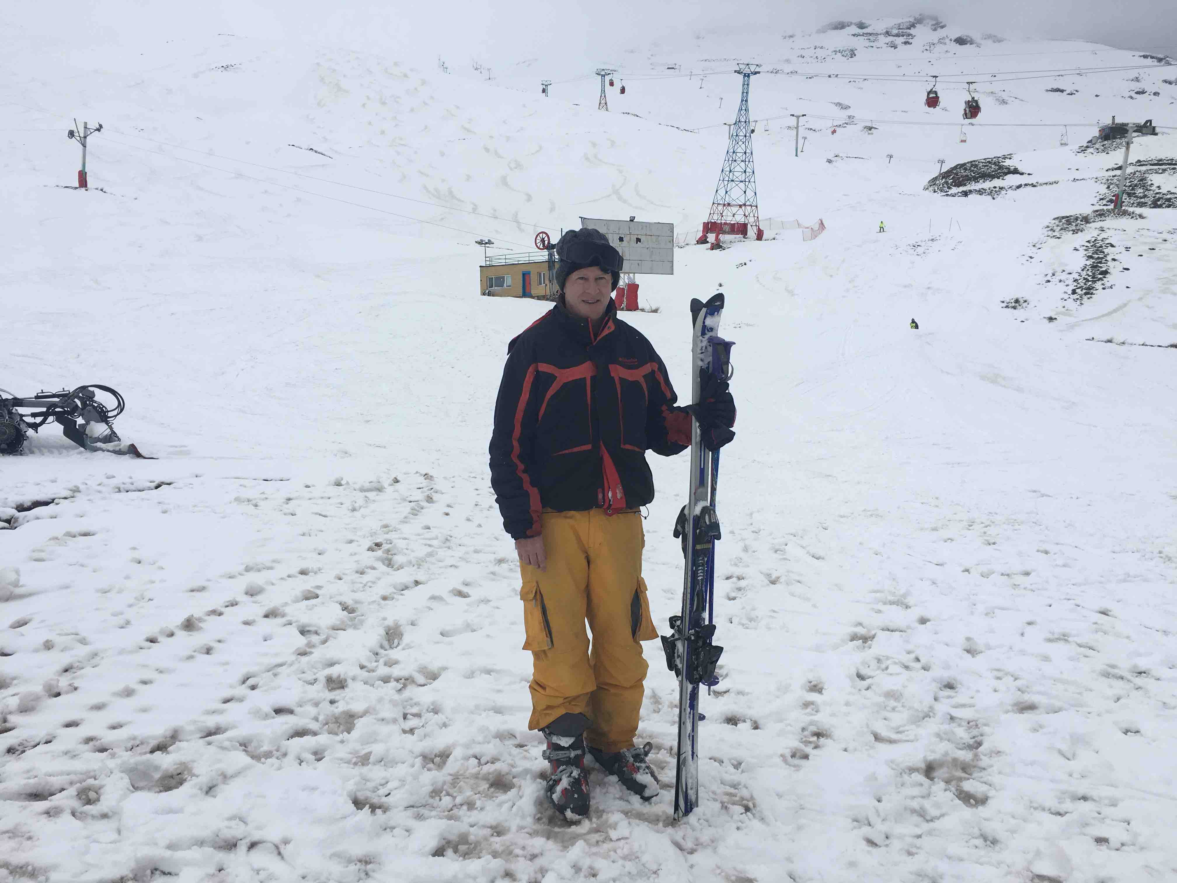 Your hardy correspondent atop Mt Tochal, the sprawl of Tehran below.