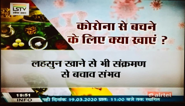 Meanwhile, even the Indian version of C-SPAN, Lok Sabha TV, aired advice claiming that eating garlic prevents infection.
