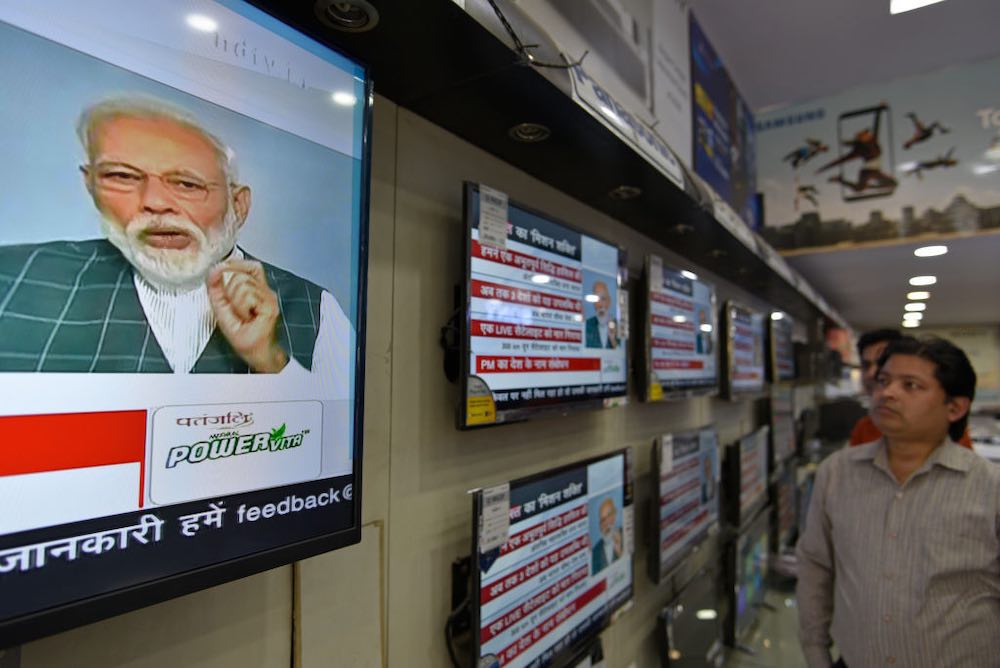 Narendra Modi announces the successful anti-satellite test on 27 March (Photo: Sanchit Khanna via Getty)