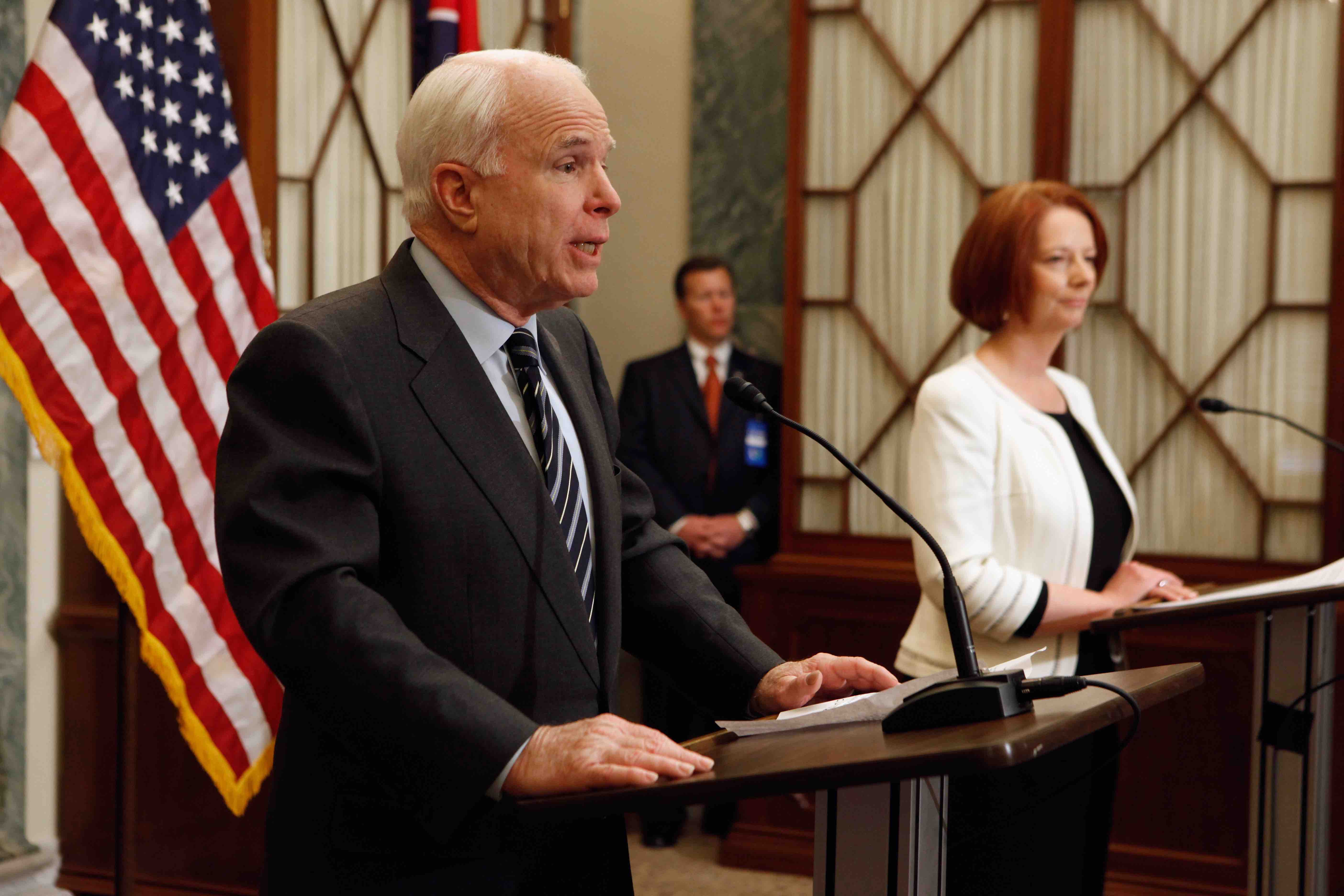 McCain, with then Australian prime minister Julia Gillard in Canberra, 2011 (Photo: Chip Somodevilla/Getty)