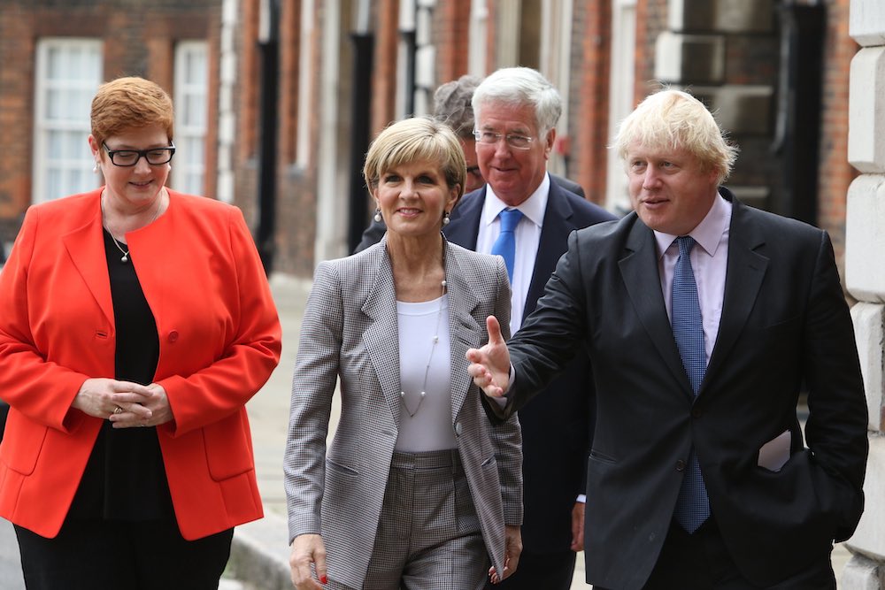 Marise Payne (left) and Julie Bishop in 2016 with then British ministers Michael Fallon and Boris Johnson (Photo: FCO/Flickr)