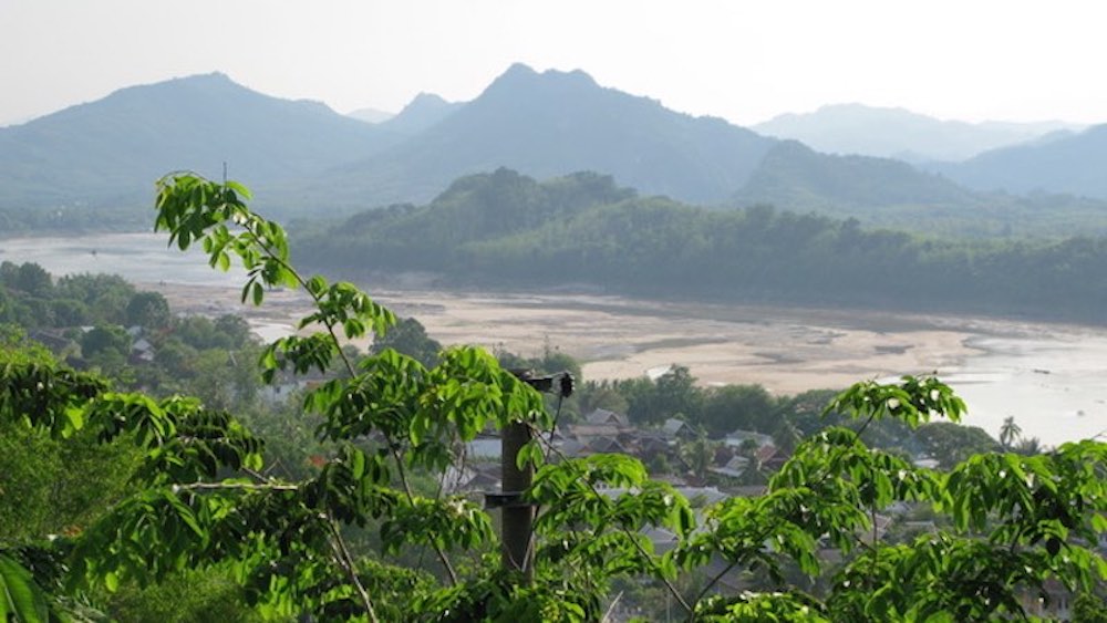 Droughts have been a recurrent issue for the Mekong over the centuries, reflected by this photo taken in Luang Prabang, Laos, in April 2009, when the section of the riverbed through which water was flowing had been diminished to a width of about ten metres.