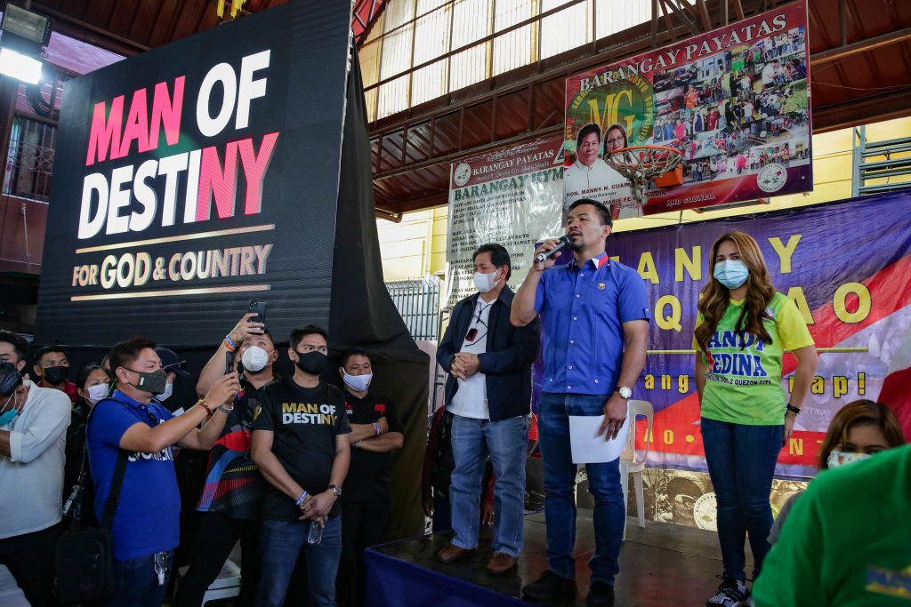 Filipino boxing icon and Senator Manny Pacquiao campaigns in his bid for the presidency in Quezon City, Metro Manila, Philippines, in December (George Calvelo/NurPhoto via Getty Images)