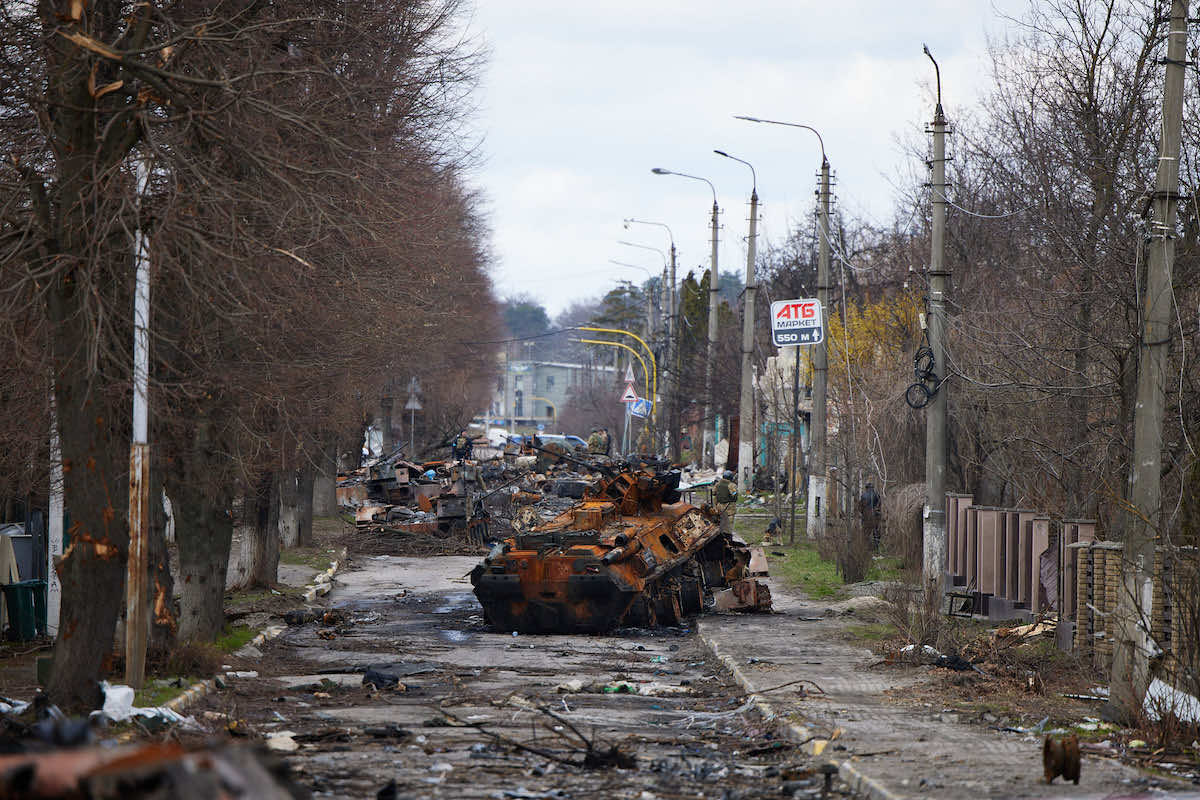 The aftermath of fighting in Bucha, the town now synonymous with allegations of Russian war crimes during the invasion of Ukraine (President of Ukraine/Flickr)