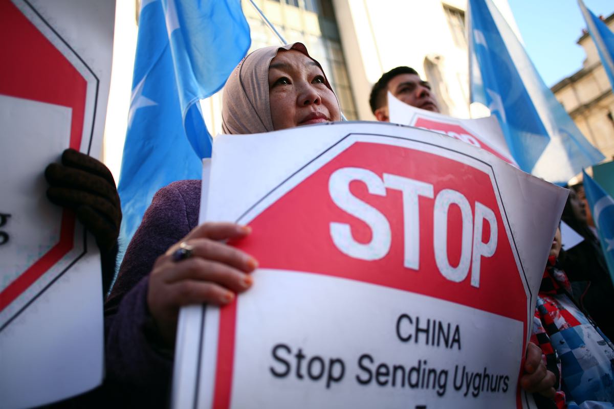 Protests outside the Chinese Embassy in London in 2020 (David Cliff via Getty Images)