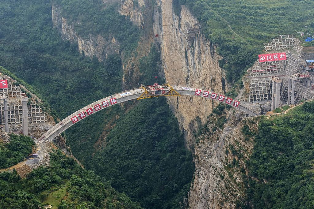 Progress this month on building the Jimingsansheng Bridge to join southwest China’s Yunnan, Guizhou and Sichuan provinces (Photo: STR via Getty)