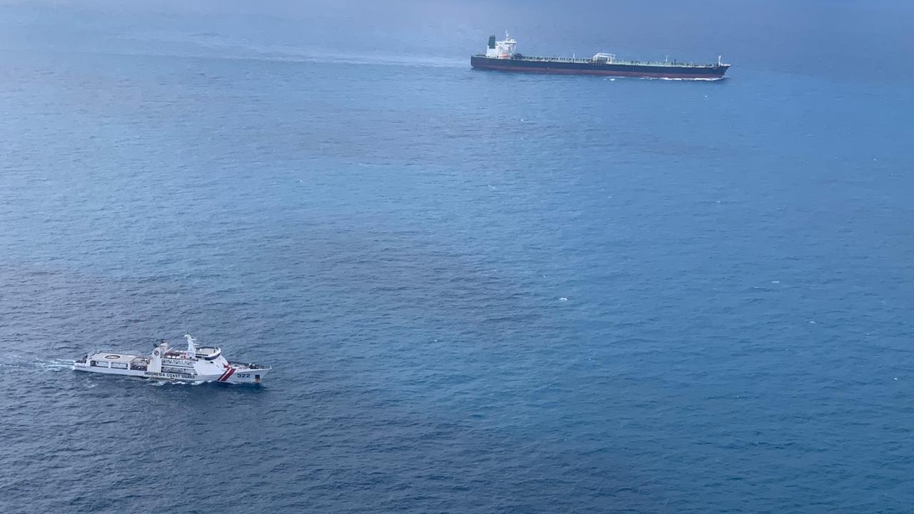 Escorting one of the tankers to port (Indonesian Coast Guard/Anadolu Agency via Getty Images)